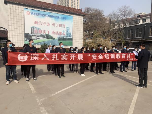 春染大地,生机勃发。4月份是公司“安全培训教育月”,二分公司结合施工生产情况提前筹划、统一部署。分公司及所属各项目部分别成立了安全培训领导小组,制定了活动实施方案和培训计划,为分公司的安全生产保驾护航。